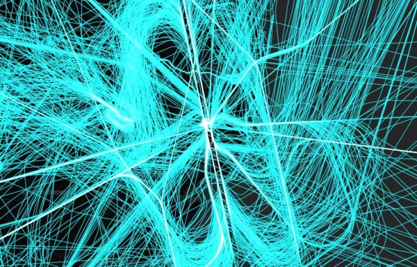 Abbildung 4: Aufzeichnung über den zurückgelegten Weg der Flugzeuge während einem Tag. © CSA Engineering AG, © MapTiler, © OpenStreetMap contributors